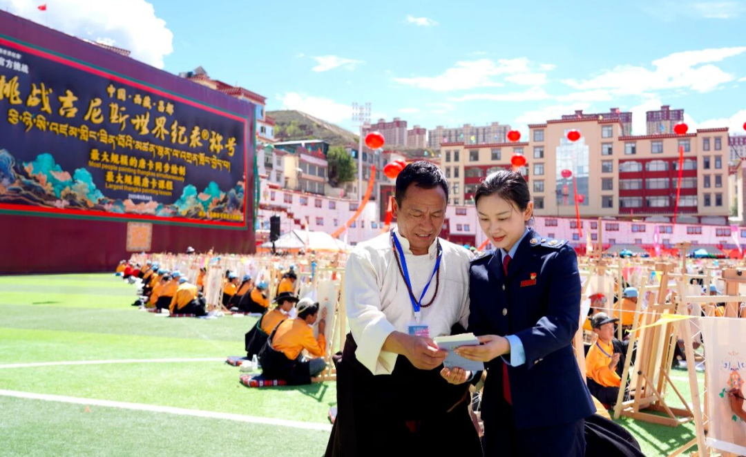 近日,西藏昌都市卡若区成功举办“最大规模唐卡课程”和“最大规模的唐卡同步绘制”两项吉尼斯世界纪录挑战活动。活动现场,国家税务总局昌都市税务局“卓卓税宣小分队”主动服务,将税费优惠政策精准送达,为这场文化盛事注入“税动力”。
