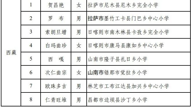 其中,西藏12名教师入选